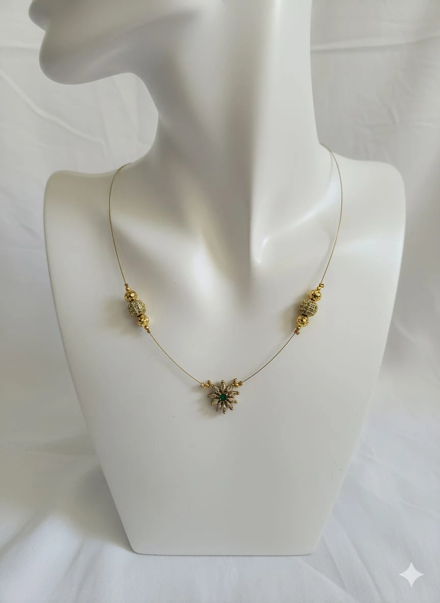 Beautiful jadau small lotus invisible necklace